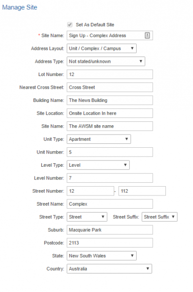 This section supports multiple addresses, but only one address can be used to populate fields in the Sign Up Portal. The default address will be used in the sign up portal.