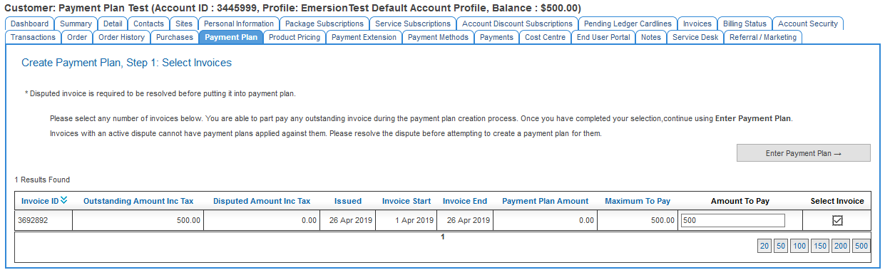 Once you have selected the invoices andthe amount from each invoice to be covered, press Enter Payment Plan to proceed to the next step.