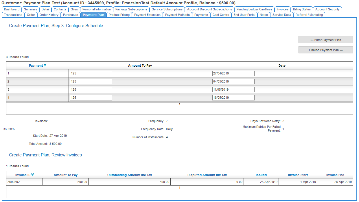 Once you are happy with the schedule and all settings, press Finalise Payment Plan to create the payment plan.