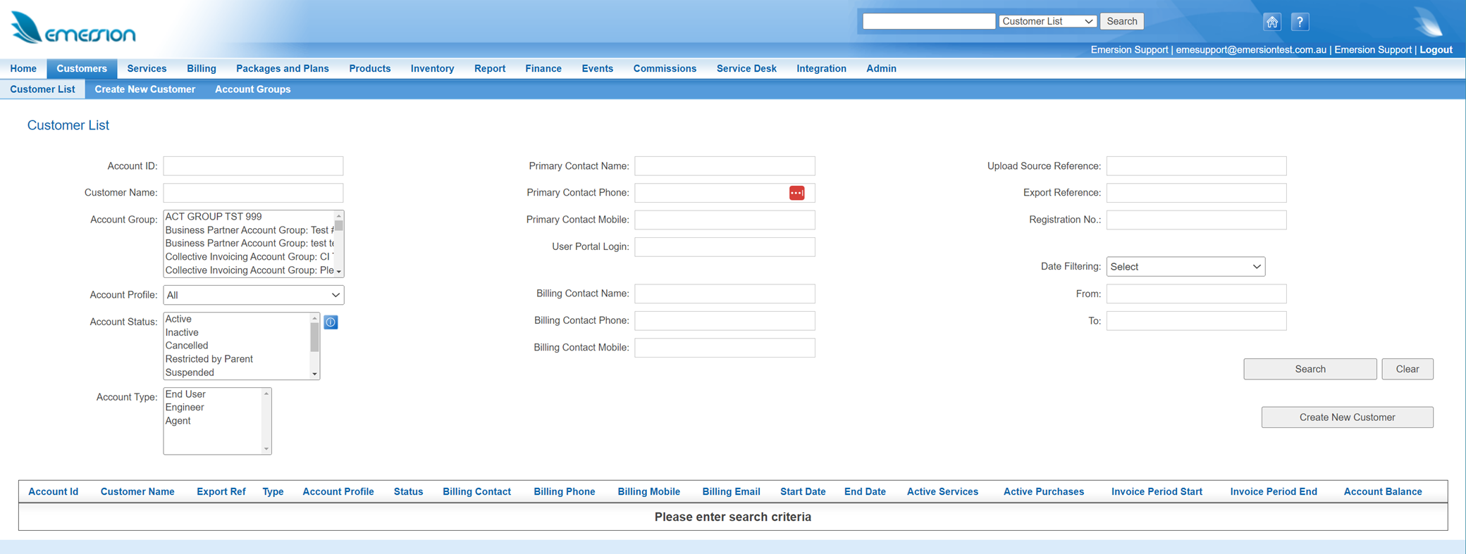 Once a search has been performed, click the Account ID of the customer to view the Customer.
