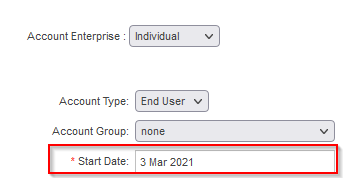 In the Create Account Wizard shown below, you can see that the Start Date has defaulted to 3 Mar 2021 (image was taken on the 3rd June 2021)
