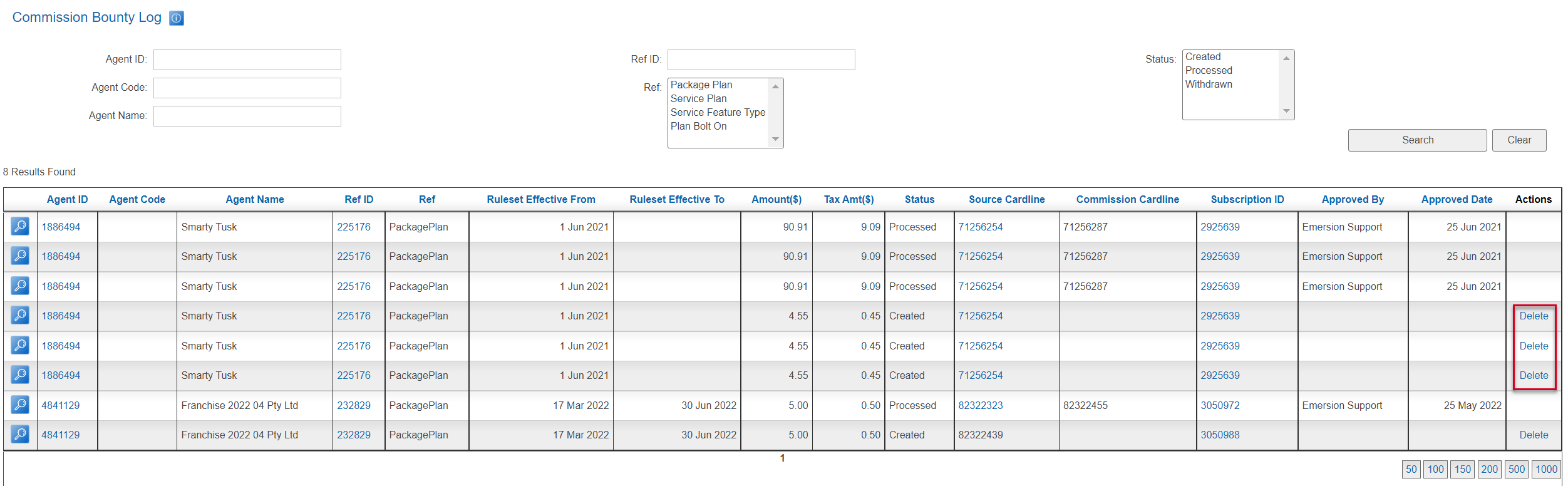 Commissions that have already been Processed or Withdrawn will also appear in this list, they can be filtered out by selecting Created in the Status field.