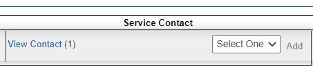 To enter a service contact for the service, go to the Service Contact column and use the drop down the menu.