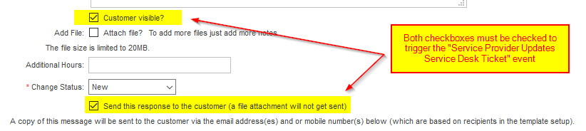 This event is used to send a notification to the customer when a service provider has updated a service desk ticket via email or the end user portal.
