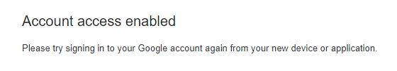 you may attempt to "allow" access by firstly ensuring your browser is logged into account.google.com using the GMail mailbox username/password successfully and then navigating to the following URL directly: