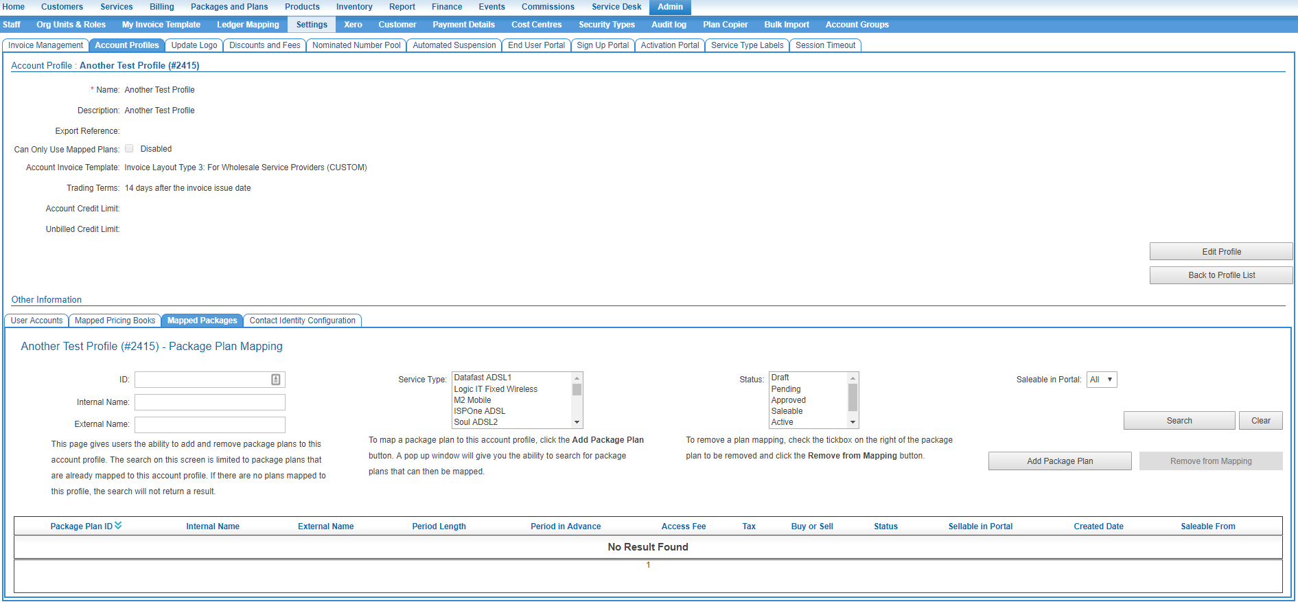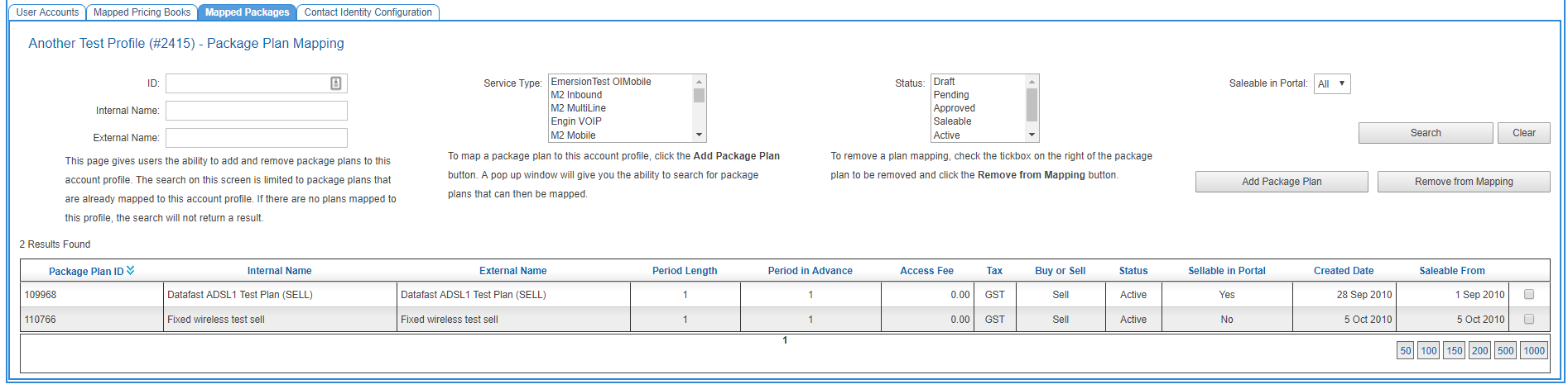 Check the tick box on the right of the package plan to be removed and click the Remove from Mapping button.