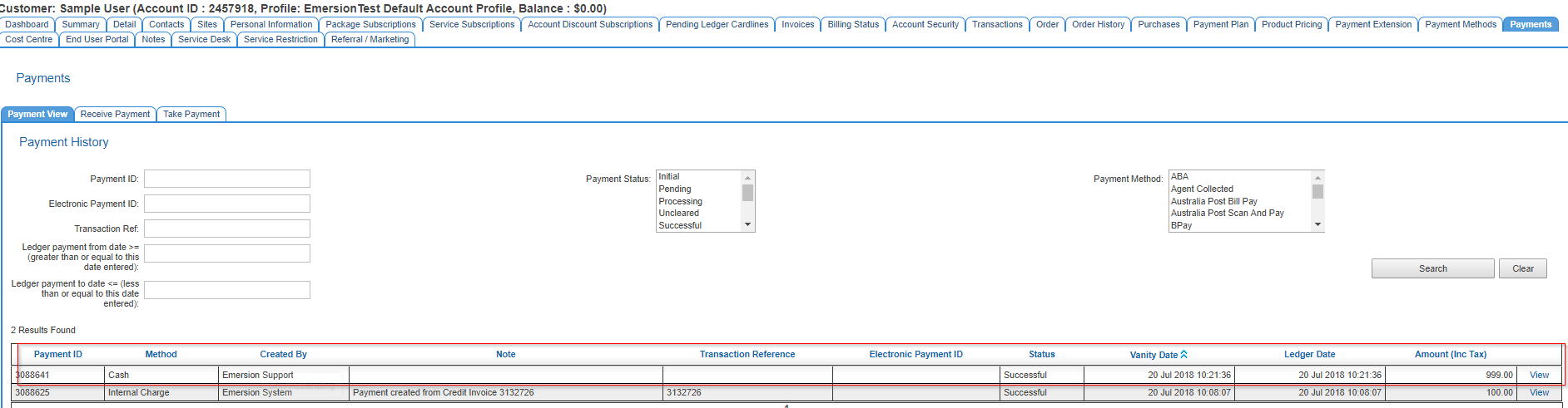 - The payment has yet been entered into Emersion, or the payment in Emersion is not in a success status