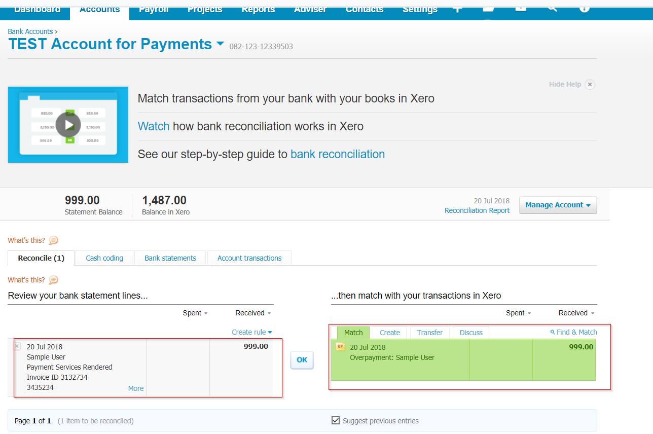Many users use the Xero account reconciliation wizard to conveniently reconcile funds received in their bank account with payments that have flowed Emersion.