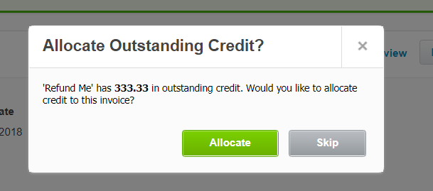 If Skip is selected users can navigate to the Overpayment later and allocate it.