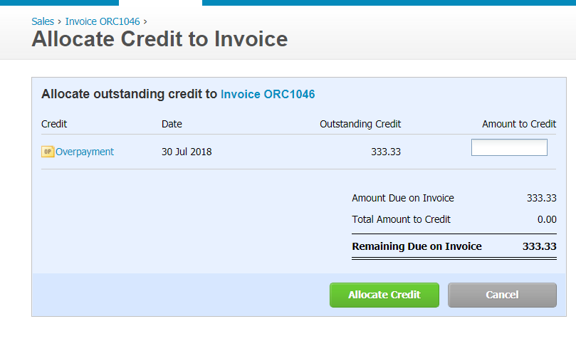 If the credit is not yet allocated to an invoice in Emersion, it will also remain unallocated in Xero. As the credit amount is allocated in Emersion, it will also in turn allocate in Xero. In this example, we can see the credit amount has been subsequently allocated.