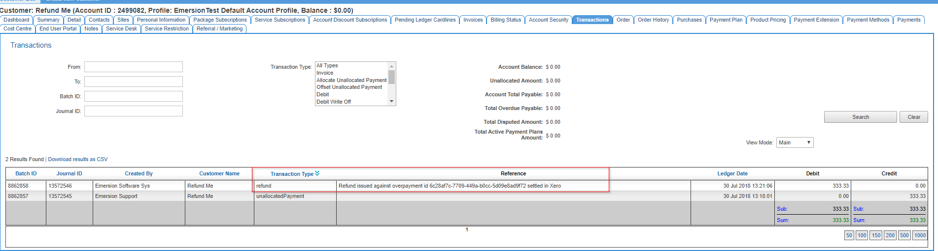 Once a synchronisation between the two systems has been performed, in Emersion users will see a refund has been issued on the general ledger with a reference back to the Xero payment in the description.